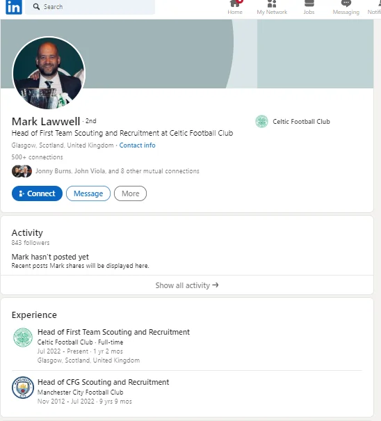 The starting point for the decline is Mark Lawwell. A man with no online employment history other than his own dubious Linkedin claims and the misplaced belief of Michael Nicholson. There is no mention of Lawwell Mini anywhere on the websites of the City Football Group or Manchester City, nothing is known about the job that he had prior to a very senior role in the CFG, or Manchester City.