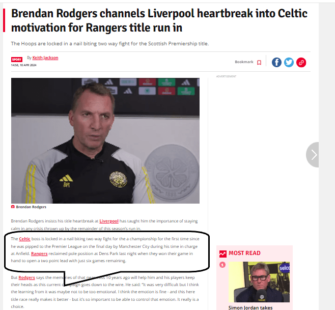 Picking up on an interview given by Brendan Rodgers to Celtic TV Jackson decided to get one step ahead and have his verdict on the story put to bed in plenty of time for Thursday’s print edition, expected to sell just over 50,000 copies.