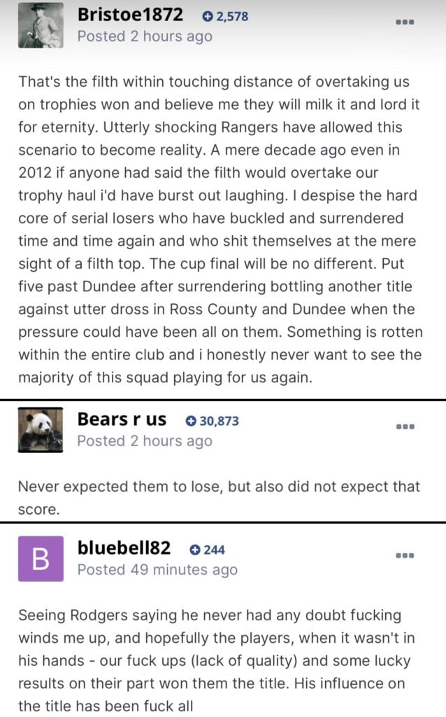 As the post above shows claiming 55 in season 20/21 is in very real danger of backfiring. As they say in the school playground ‘they started it’, in 12 months Celtic could be sitting on that meaningless number which might just be a step too far for the Gullible & Deluded to cope with as they desert in droves.
