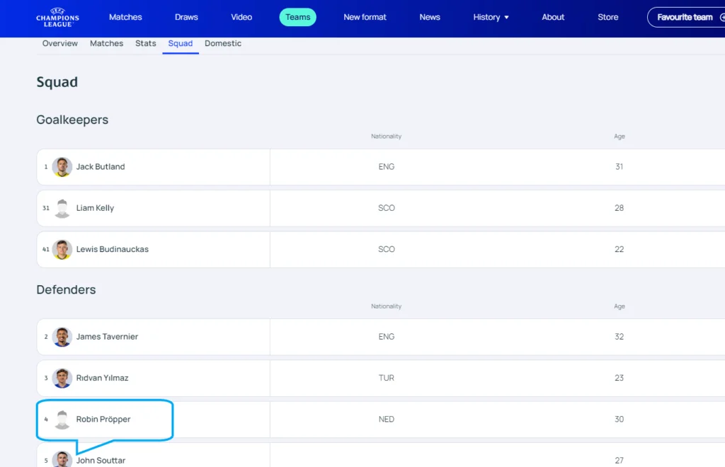 The UEFA website remained static throughout Friday morning, at lunchtime it was updated with Propper included among the defenders to the exclusion of former AC Milan starlet Clinton Nsiala.